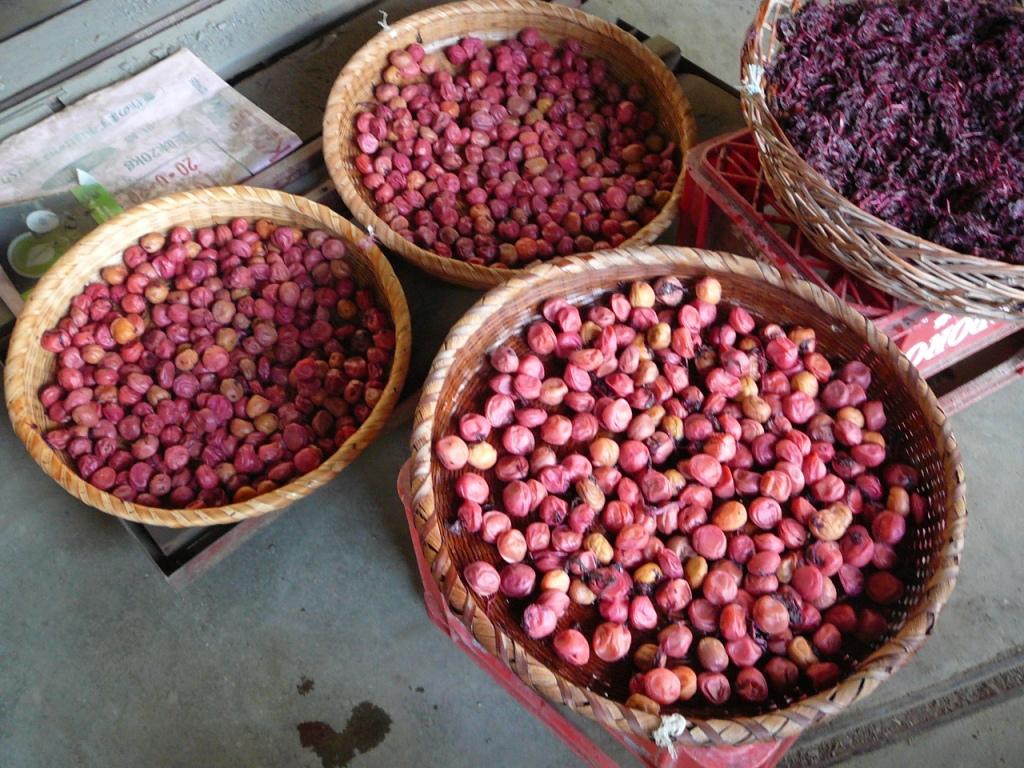 夏の土用のころ三日三晩ざるに並べて乾燥させて瓶詰めにする。梅酢は保存して生姜や大根を薄切りにして漬物にしてたべると美味しい。