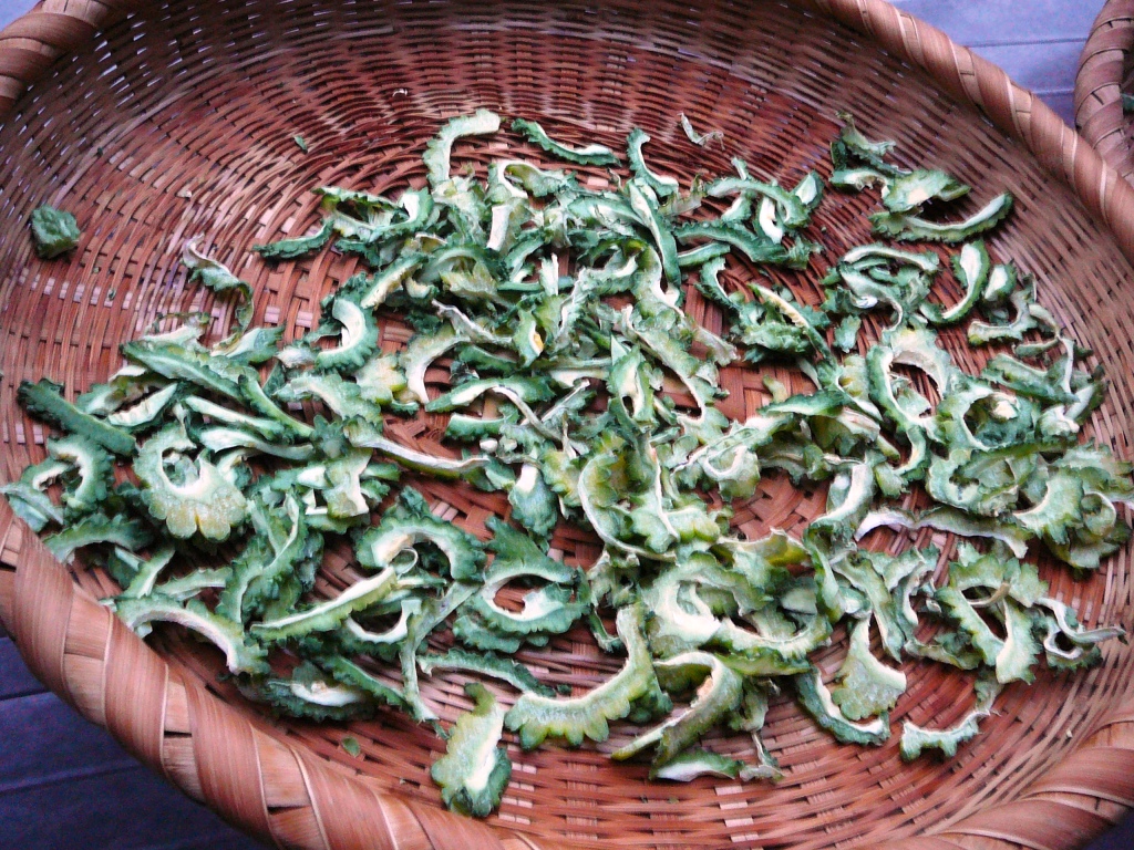 乾燥ゴーヤは薄切りにして4日から5日位、晴れた日に乾燥させれば出来上がり。