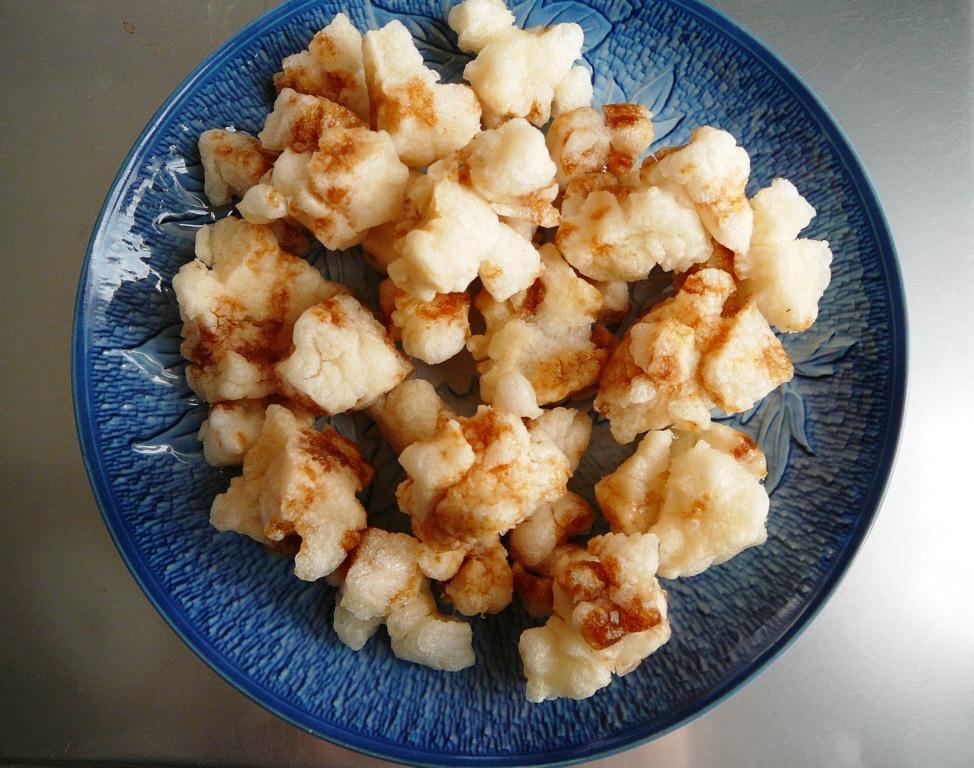 正月のもちの残りを細かく砕いてあげもちの醤油せんべいにした。