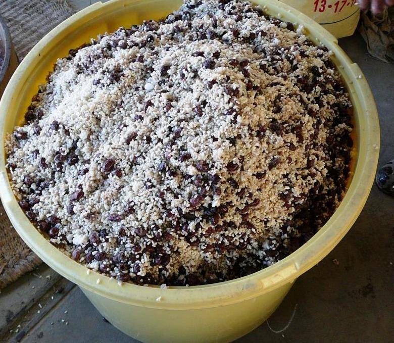 ④ 良く煮た黒豆と塩麹を混ぜる