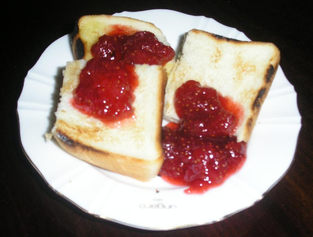 イチゴジャムができあがった。タップリかけてさっそく食べてみた。