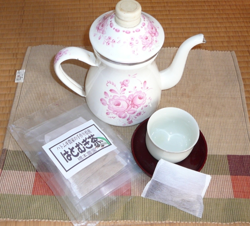はとむぎ茶でおいしくいただきましょう。