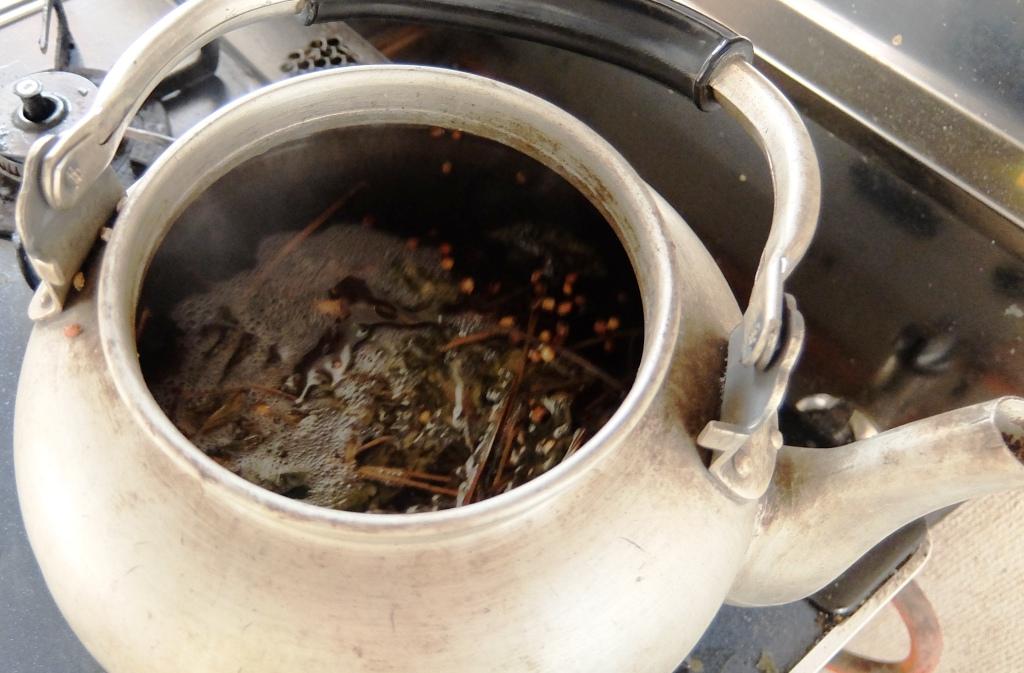 この写真はドクダミと一緒にはと麦を入れて煮てみた。