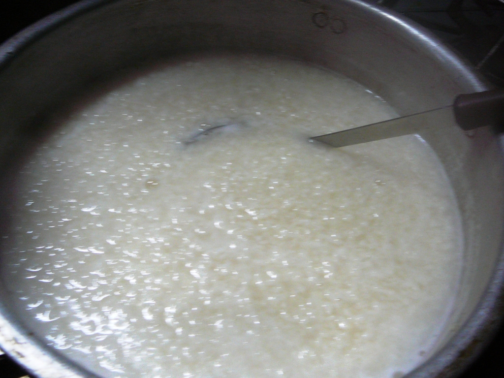 なべにうつし、お湯を2合入れて60度くらいに冷ます。