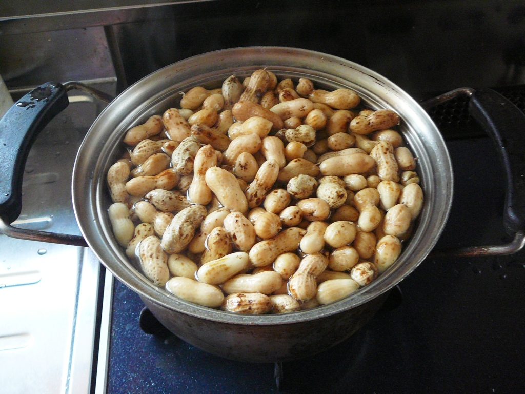 鍋に洗った殻付きのままの落花生をたっぷりの水にいれる。