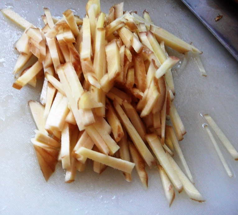 3日くらい塩抜きした古漬けは小口切り、ナスの古漬けも一緒に刻んで入れても差し支えない。