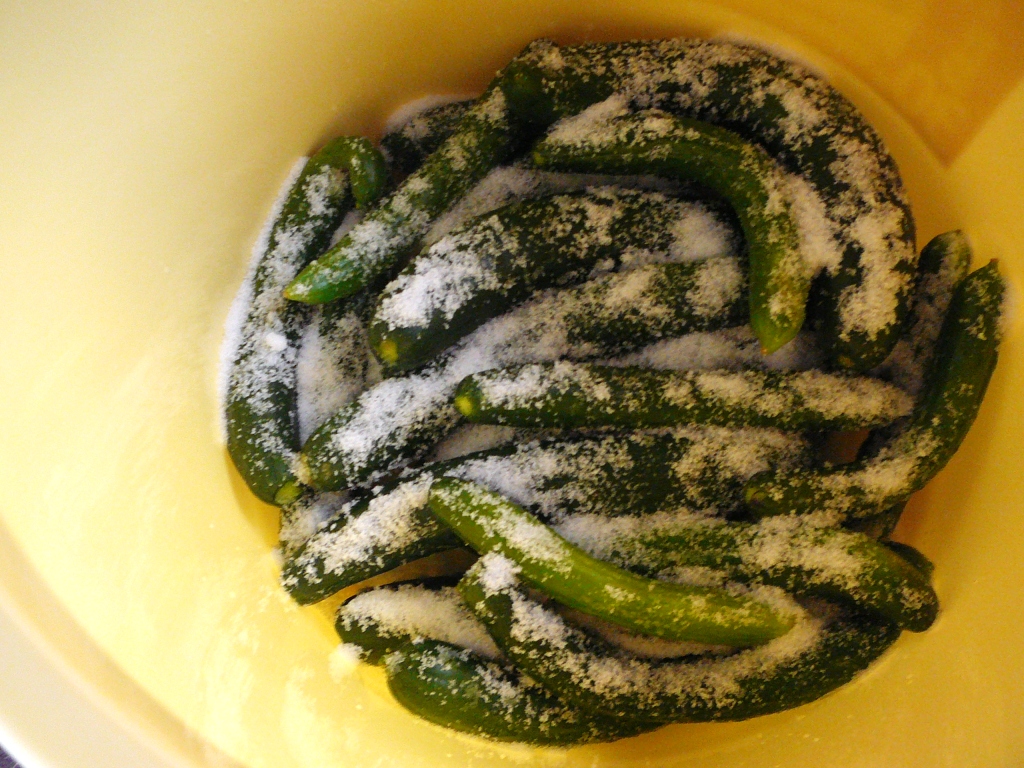 毎日きゅうりが採れるので少しずつ漬け込んでいく。