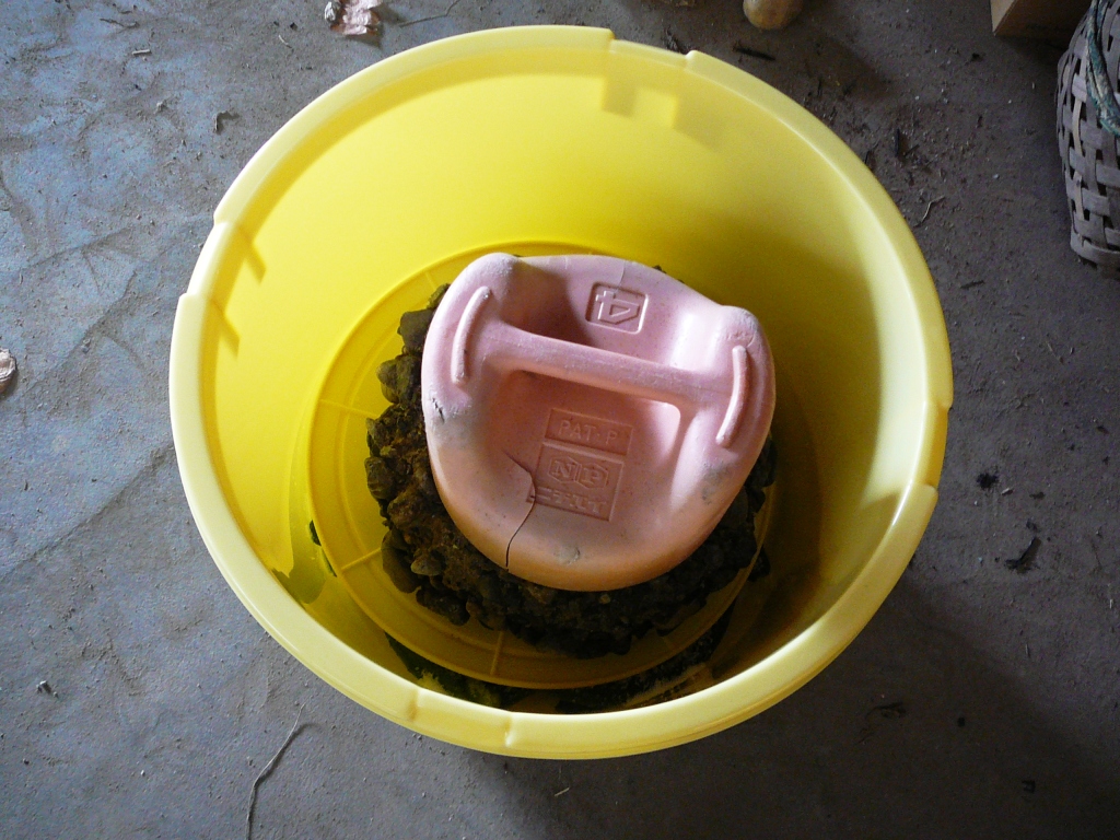 *重石は重ければ重いほど良い。(軽い場合は2つ重ねて使うとよい)15キロくらいで作ってみた。