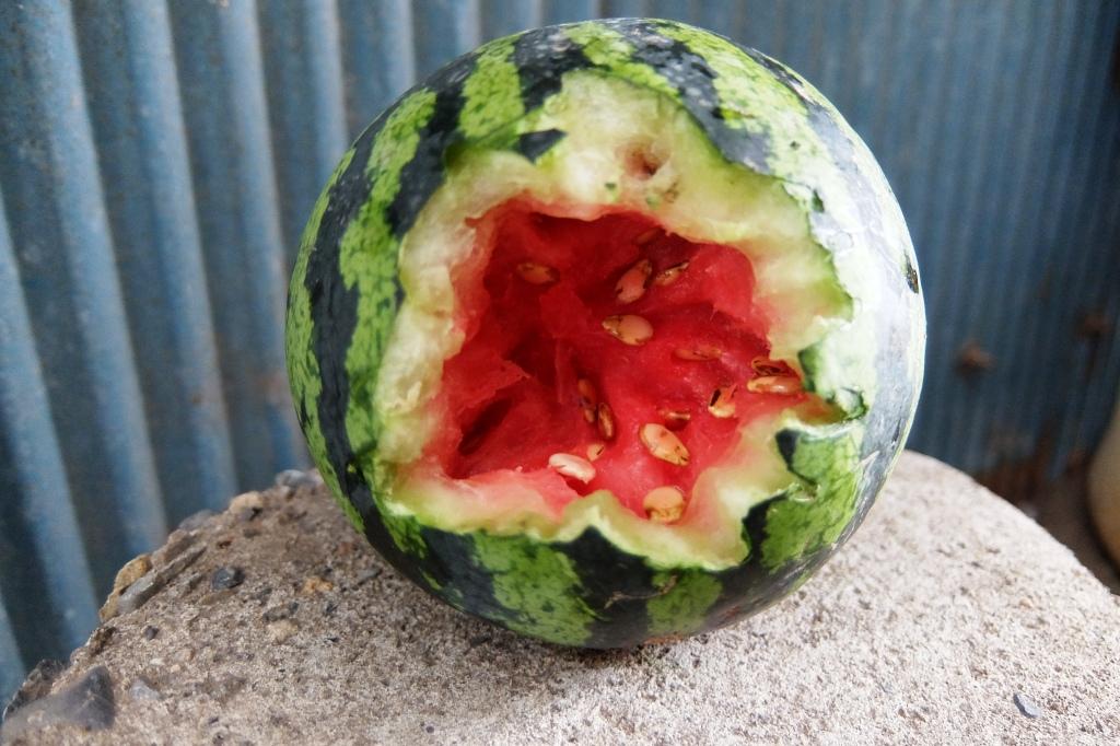 スイカもまだ熟していないし色も赤みが薄くやや早い。